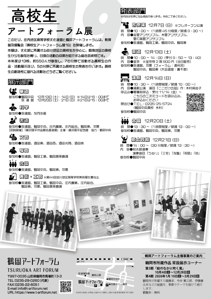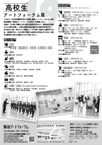 | 主催 | 庄内地区高等学校文化連盟/鶴岡アートフォーラム/鶴岡市教育委員会 | ||||||||||||||||||||||||